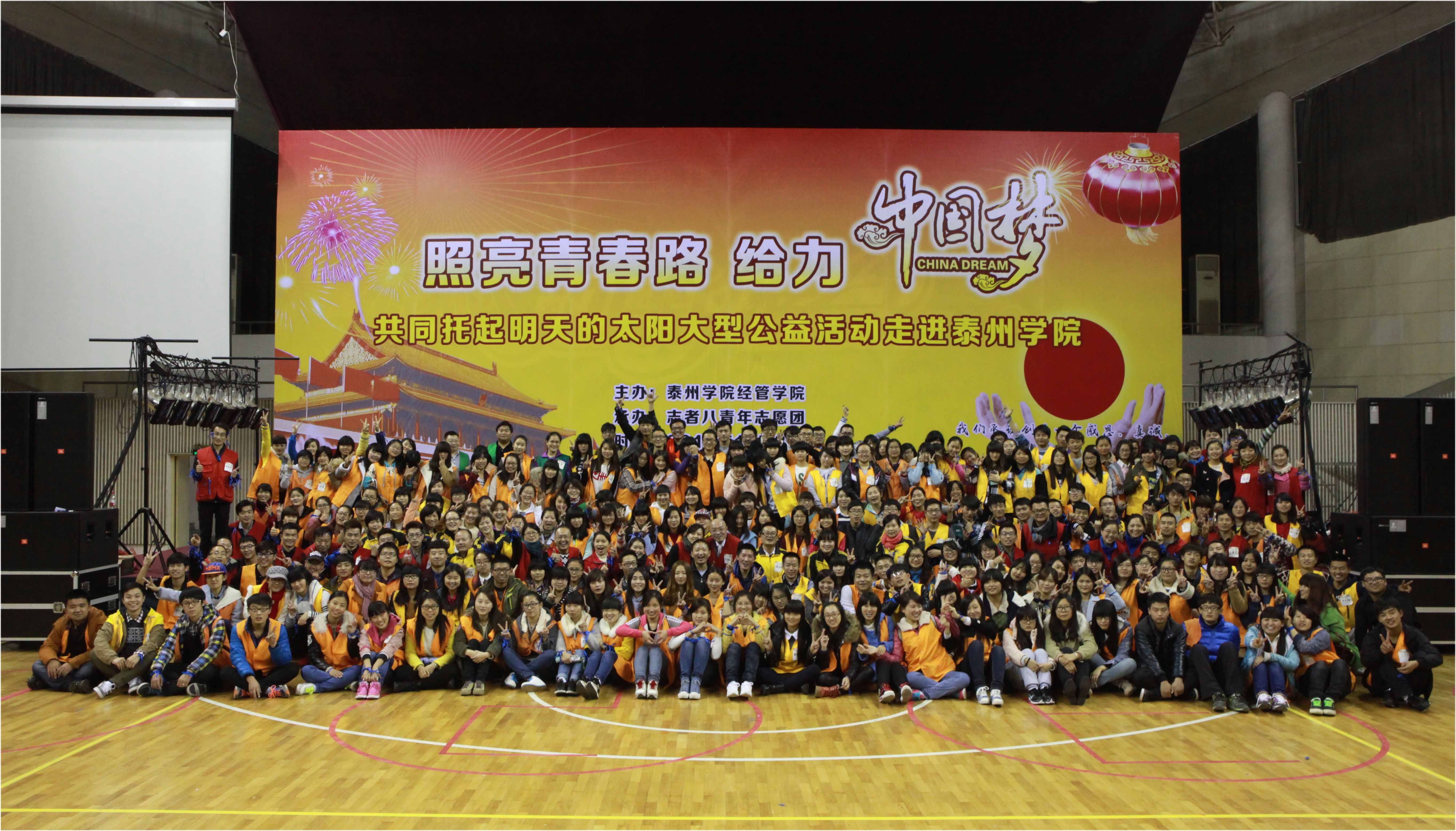 “共同托起明天的太阳”是一项具有积极意义的大型公益活动,也是泰州地区的第一场高校员工大型公益活动。公司筹办的本次活动,目的就是为了能够让青少年拥有更加良好的成长、教育环境,形成员工、家长、教师之间有效沟通的崭新关系,进行素质教育的有益探索。作为公益性活动,上海志者八青年团承担了本次活动的全部费用。
